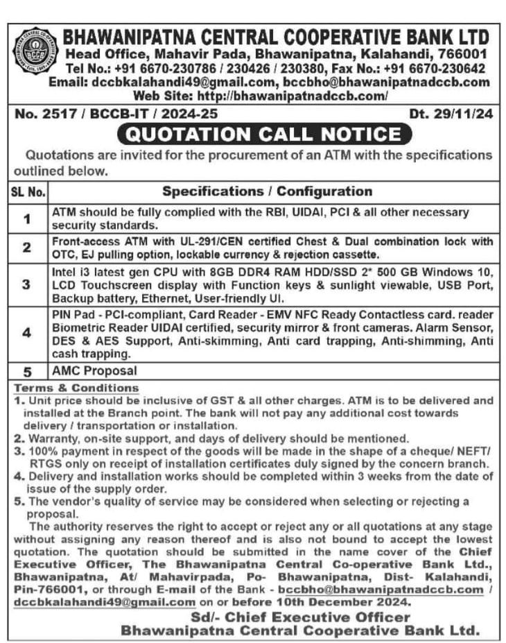 ATM CALL Quotation Notice