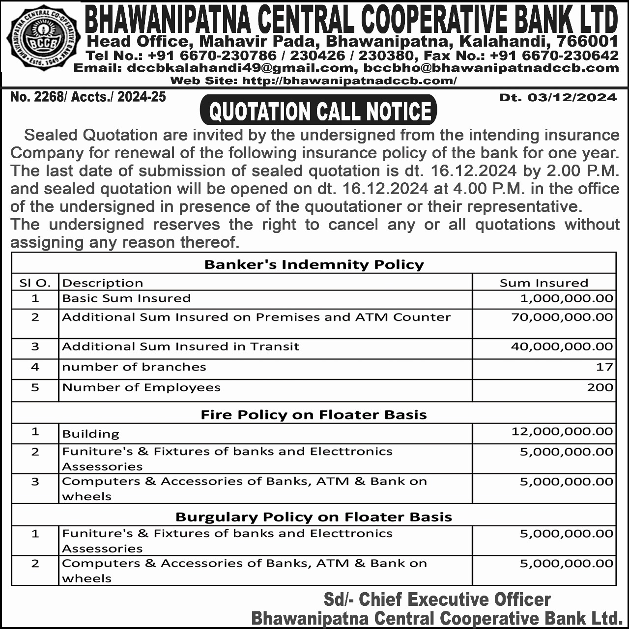Quotation call notice-No.2268/Accts./2024-25 Dt.03/12/2024